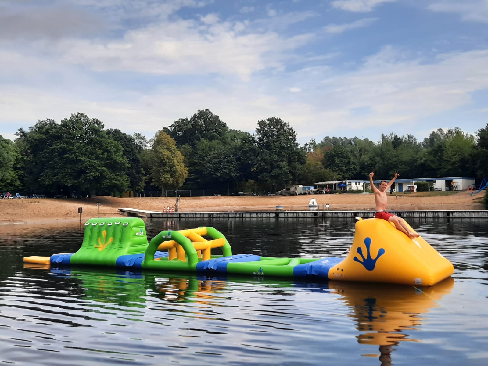 Schon im Februar hatte sich das Team rund um Ressortleiter Andreas Fischer auf die Suche nach neuem Equipment für den See gemacht. Schnell hatte man sich auf den AquaPark geeinigt. Durch Corona durfte er bislang aber nicht zum Einsatz kommen. Vergangene Woche gab es dann die langersehnte Erlaubnis von Gemeinde und Ordnungsamt.
