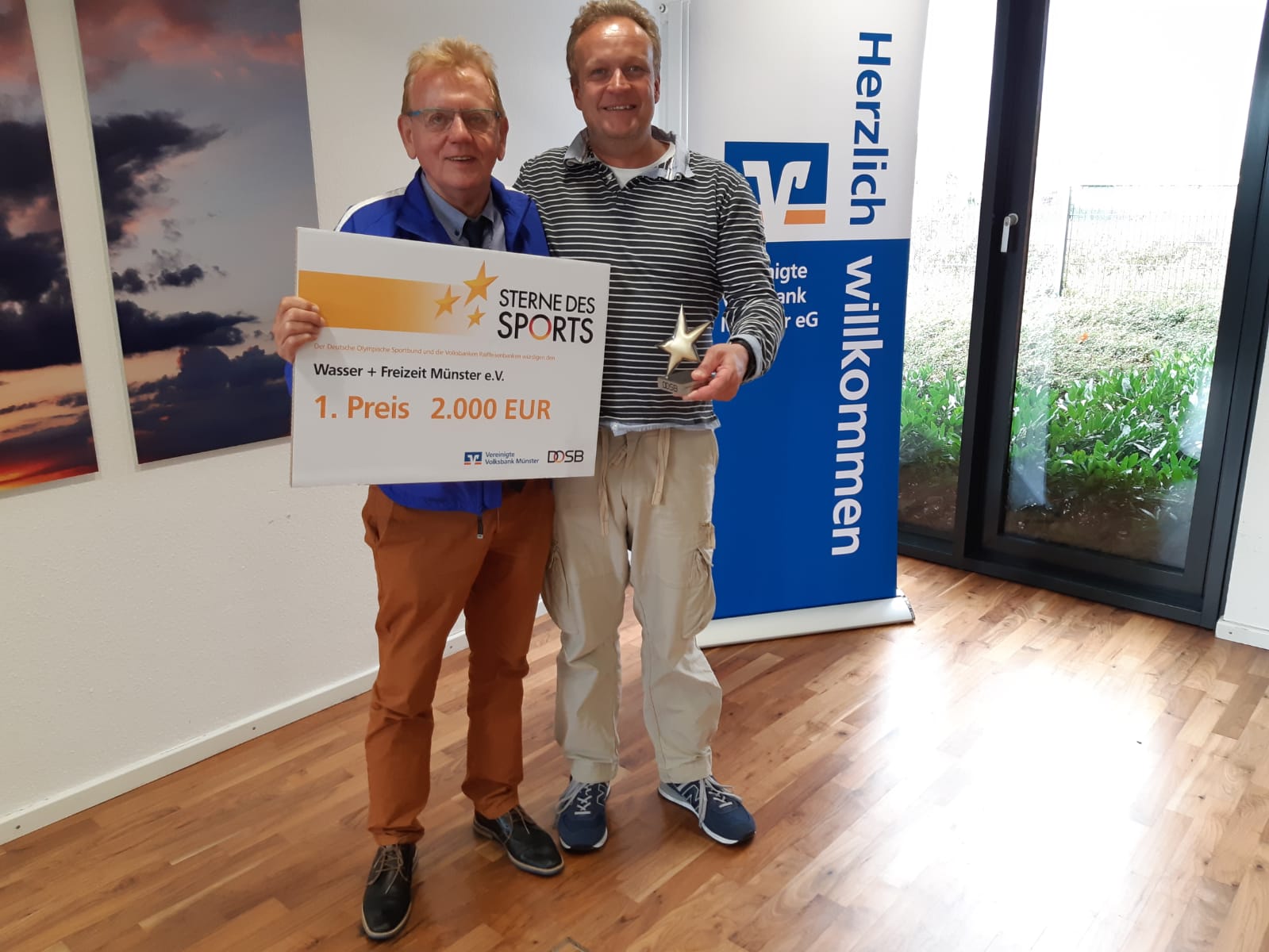 Gestern war nun die offizielle Preisverleihung für die Sterne des Sports regional – das bedeutet auf Bronzeebene. Hier konnte W+F die Jury überzeugen und belegte vor den AFC Mammuts und dem TSV Handorf den 1. Platz!! Dieser war mit einem Preisgeld von 2.000€ datiert. Dieser Betrag kann nun dem Schultriathlon zugutekommen.