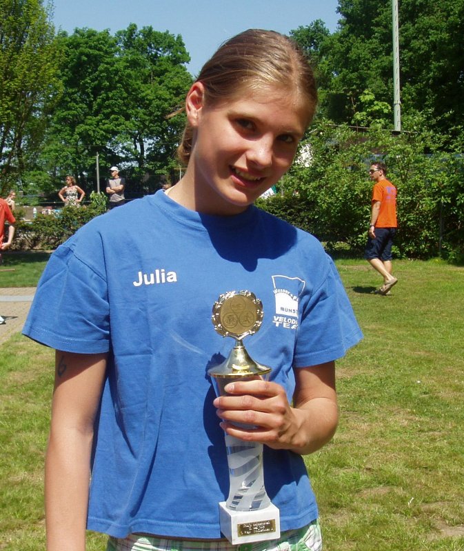 In aller Frühe jedoch waren zunächst die Schüler und Jugendlichen an der Reihe, die zum ersten Mal mit einem Wasserstart im See auf die 500 m lange Schwimmstrecke geschickt wurden. Mit dabei dreizehn Nachwuchssportler vom Velodrom Team Wasser + Freizeit Münster, für die nach dem Schwimmen 10 km auf dem Rennrad und abschließend 2,5 km laufen auf dem Programm standen. Die beste Platzierung erreichte die A-Schülerin Julia Hecker, als sie nach 42:33 Minuten als Fünfte ihrer Altersklasse das Ziel erreichte. Nach ihren beiden NRW Vizemeistertiteln im Duathlon und Swim and Run kam sie in der Gesamtwertung des Nachwuchscups auf einen hervorragenden dritten Platz. Für ihre konstanten Leistungen wurde sie mit einem Pokal des NRW Triathlonverbandes geehrt. Die gleiche Platzierung erreichte Julia auch in der Teamwertung mit ihrer Vereinskollegin Lisa Hülsmann, die in Krefeld auf Rang sieben finishte (45,18 Minuten). Hannah Pösentrup und Anna Hülsmann belegten die Plätze 15 und 17.