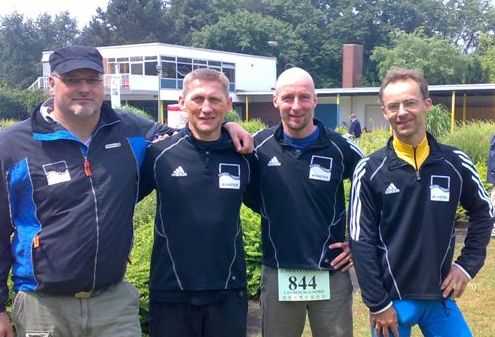 Nach dem mäßigen Ergebnis des letzten Landesligawettkampfs in Harsewinkel waren die Triathleten von Wasser und Freizeit Münster bei dem Dalkemann-Triathlon in Gütersloh gefordert. Bei kühlen Temperaturen mussten die Triathleten Klaus Schulte, Wolfgang Pissarsky, Norbert Franke und Christoph Vollmer schon um 8:40 Uhr ins Wasser. Nach 1000 m schwimmen, 40 km Radfahren und 10 km Laufen kam als gesamt 16 K. Schulte (Gesamtzeit 2:16:27 h, Platz 3 AK M40),W. Pissarsky als gesamt 24 (2:20:03 h, Platz 1 AK M50), N. Franke als gesamt 43 (2:27:35 h, Platz 10 AK M40) und Ch. Vollmer als gesamt 55 (2:46:46, Platz 13 AK M40) ins Ziel. Mit diesem Ergebnis belegte die Mannschaft den 10 Platz von 14 Mannschaften und verbesserte sich in der Gesamtwertung der Landesliga vom letzten Platz auf Platz 11. Mit dem Motto es kann noch besser werden startet die Mannschaft am 29.06 in Steinbeck.